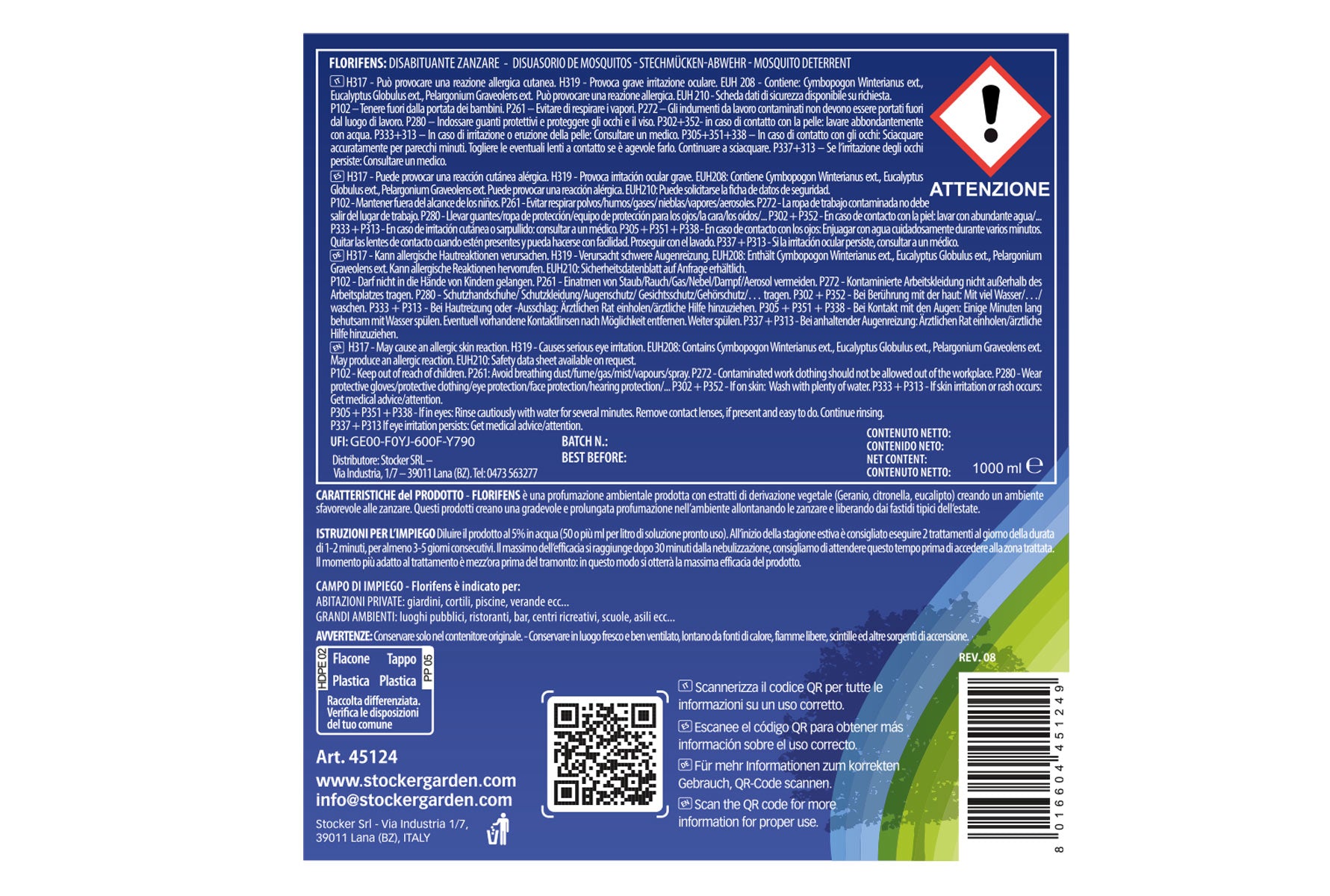 Florifens è un concentrato emulsionabile disabituante zanzare, con estratti di derivazione vegetale: geranio, citronella ed eucalipto. Ideale per trattamenti ambientali, anche a barriera, con efficacia fino a 24 ore.
