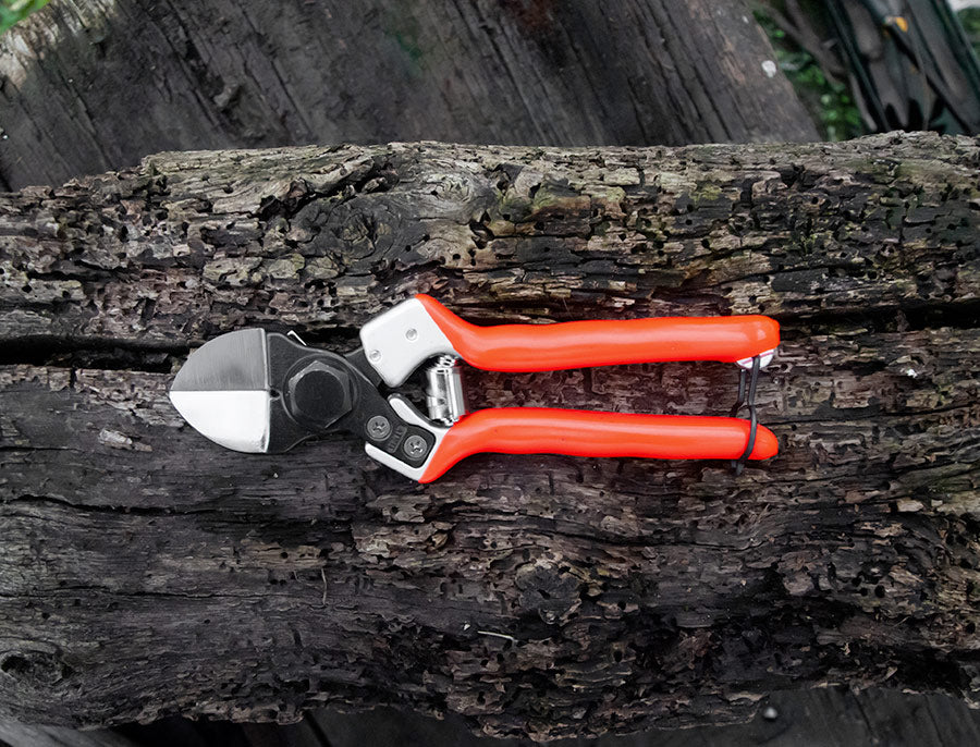 Forbice professionale a doppia lama con gruppo di taglio intercambiabile ideale per alberi da frutto. Le lame in acciaio con alta percentuale di carbonio sono forgiate a caldo con arrotatura convergente al centro che ne aumenta la penetrazione nel ramo consentendo un taglio netto e preciso, questo evita la cicatrizzazione della corteccia e la creazione di un nuovo getto. L’impugnatura è di tipo universale adatta a destri e mancini. I manici in lega di alluminio leggero sono forgiati a caldo e garantiti a vita contro la rottura. Il trattamento superficiale con ossidazione anodica permette una maggiore resistenza nel tempo che viene completata dal rivestimento con materiale atossico ed antiscivolo. Come tutti gli utensili per potatura manuale, è completamente intercambiabile e regolabile.