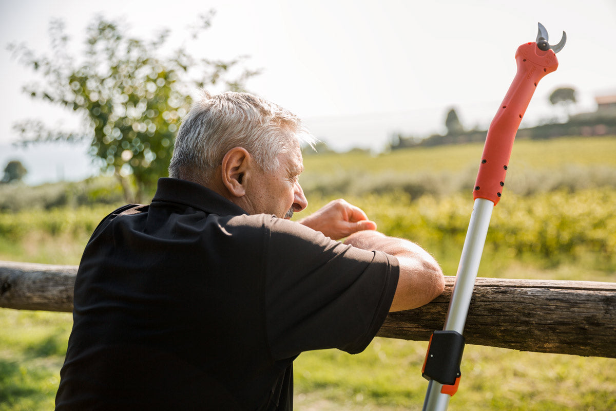 La forbice Kantia E-22 TR ha un'asta telescopica in alluminio regolabile tra 180 e 300 cm, per potare fino a 4,5 metri. Ha un un ottimo bilanciamento del peso, grazie ai suoi 1950 grammi. La testa snella e inclinata di 10° offre un’ampia visuale di taglio. L'apertura personalizzabile delle lame permette di adattarsi alle diverse dimensioni dei rami, ottimizzando la potatura: l'apertura delle lame può essere impostata facilmente su 22mm o 16mm. La forbice è dotata di una batteria Li-Ion ricaricabile da 2,5 Ah / 7,2 V, che permette di lavorare in maniera continuativa per 1,5 ore, che corrispondono a circa 1.100 tagli su rami con Ø medio 15 mm. Il kit di manutenzione incluso permette di prolungare la vita di questa forbice grazie alla facile e rapida procedura di manutenzione.