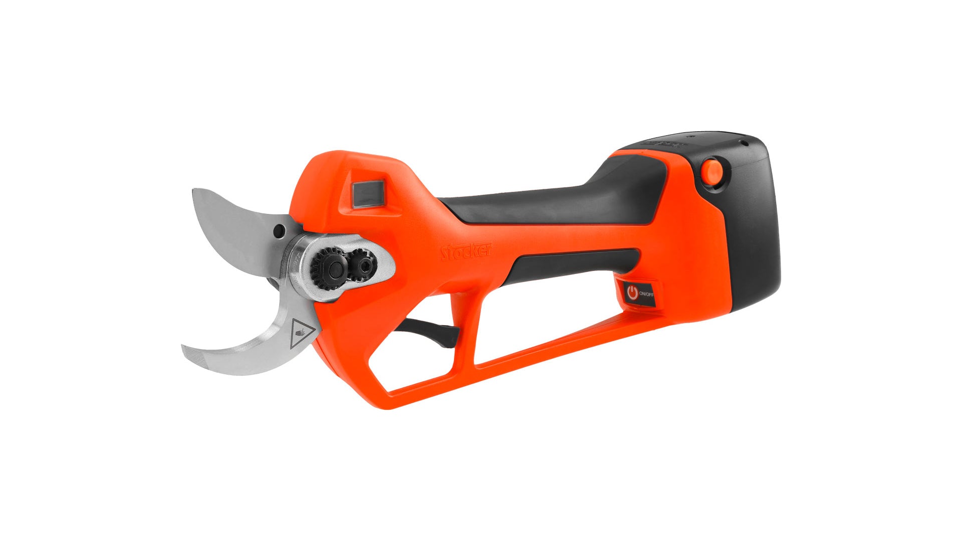 La forbice è dotata di due batterie Li-Ion ricaricabili da 2,6 Ah / 21,6 V, che permettono di lavorare in maniera continuativa per 7 ore, che corrispondono a circa 5.000 tagli su rami con Ø medio di 25 mm. L'operatore può tagliare agevolmente rami fino a 40 mm, tenendo sotto controllo, attraverso il pratico schermo a led, il numero di tagli eseguiti e lo stato di carica della batteria. Il grilletto con il sensore magnetico consente un maggiore controllo delle operazioni di taglio.
