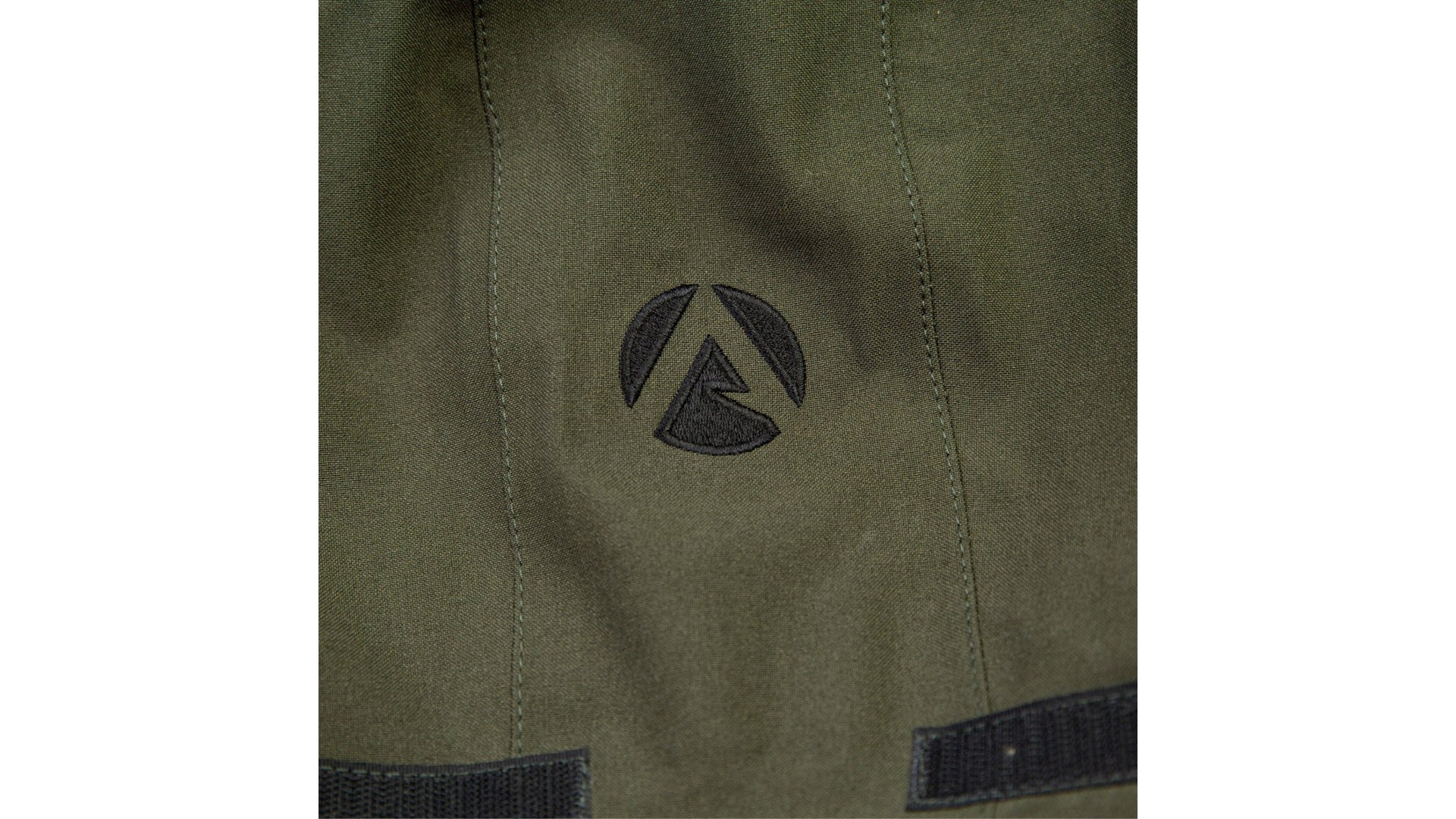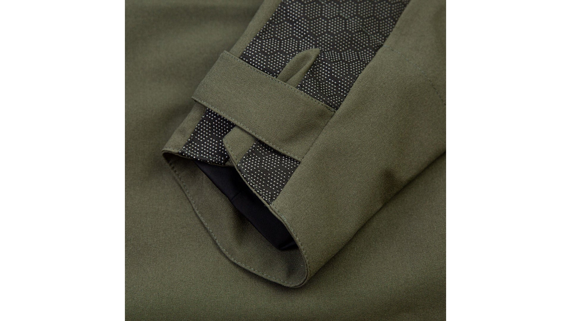 Ampia tasca con cerniera sul davanti della giacca, dotata di cerniere impermeabili e patta antivento. È inclusa una tasca nascosta sul petto, anch'essa protetta dalla grande patta antivento che copre la cerniera principale sul petto.