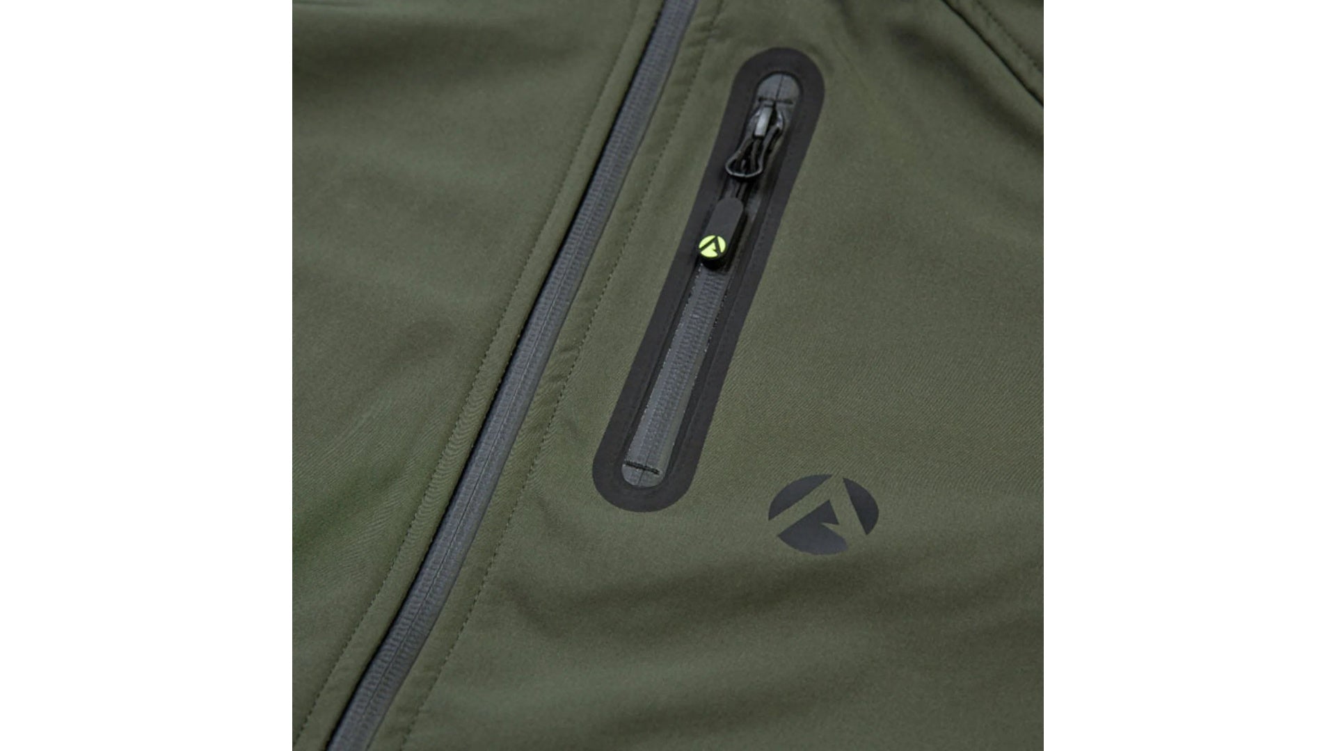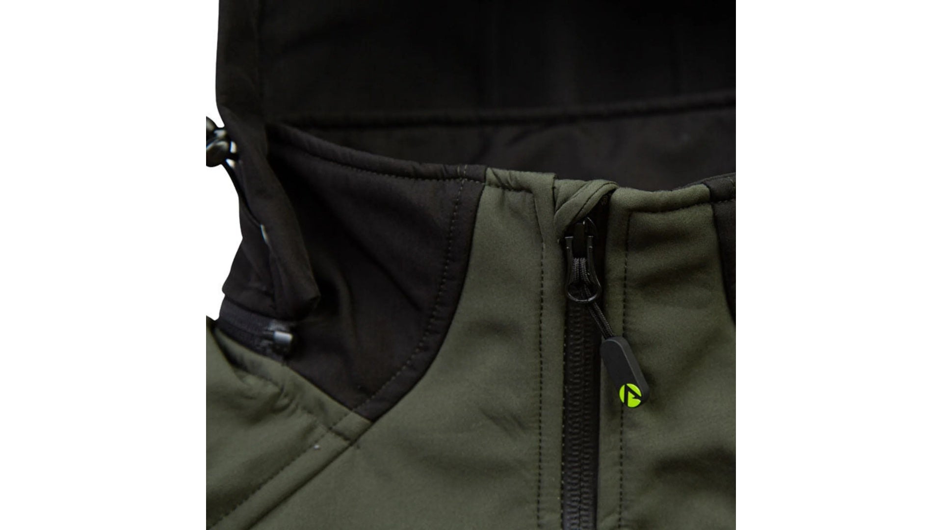 La giacca è dotata di un ampio cappuccio impermeabile completamente rimovibile. Le grandi cerniere posteriori fungono anche da ventilazione aggiuntiva e sono presenti ulteriori porte di ventilazione con cerniera sotto le ascelle.