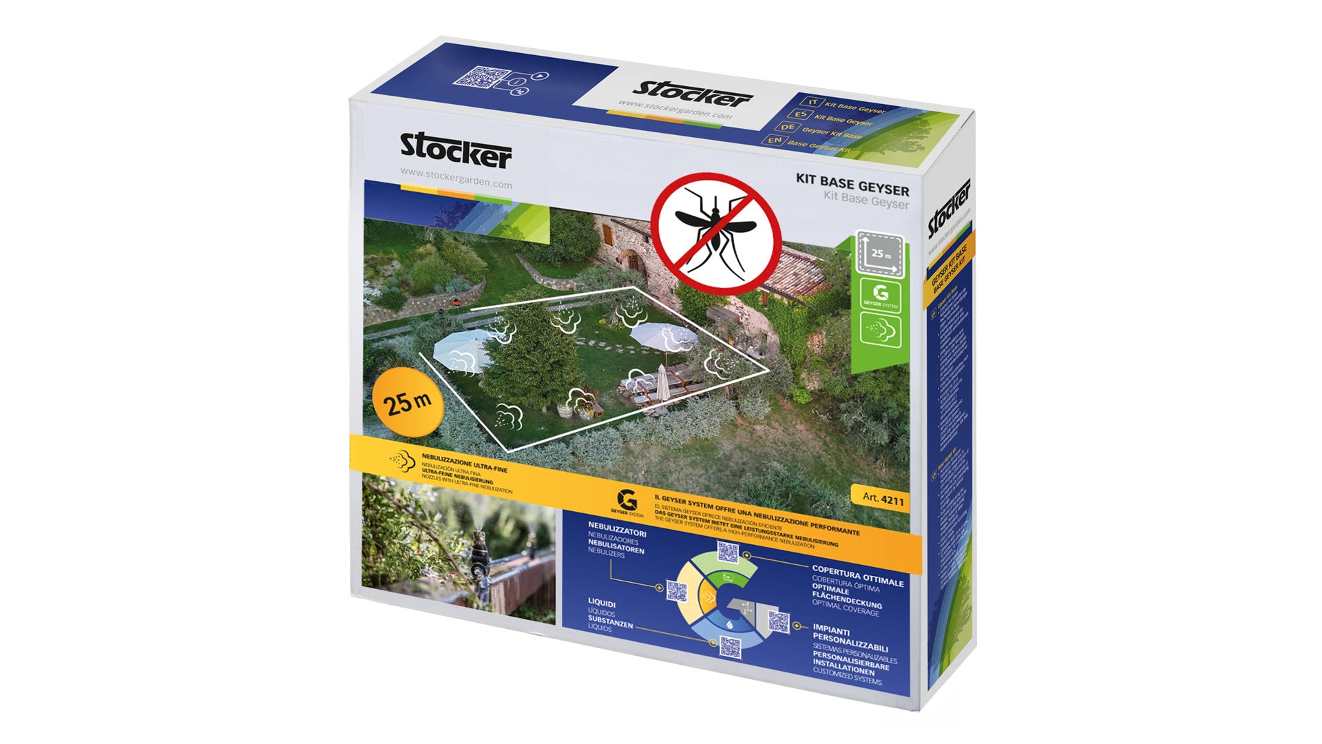 Completo di: 25 m di tubo, 10 ugelli a nebulizzazione ultra-fine, 10 raccordi a T, 3 tappi di chiusura e 5 fermatubo.