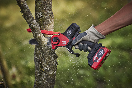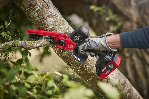 La 48MCSX è una sega da potatura leggera e compatta alimentata a batteria progettata per l'uso in giardino. Offre una combinazione ideale di prestazioni e manovrabilità, facilitando la gestione delle attività generali di taglio e potatura. Le caratteristiche di sicurezza includono un sistema di avviamento a due pulsanti e un paracatena, mentre la batteria è compatibile con tutti gli altri strumenti Cramer 48V.