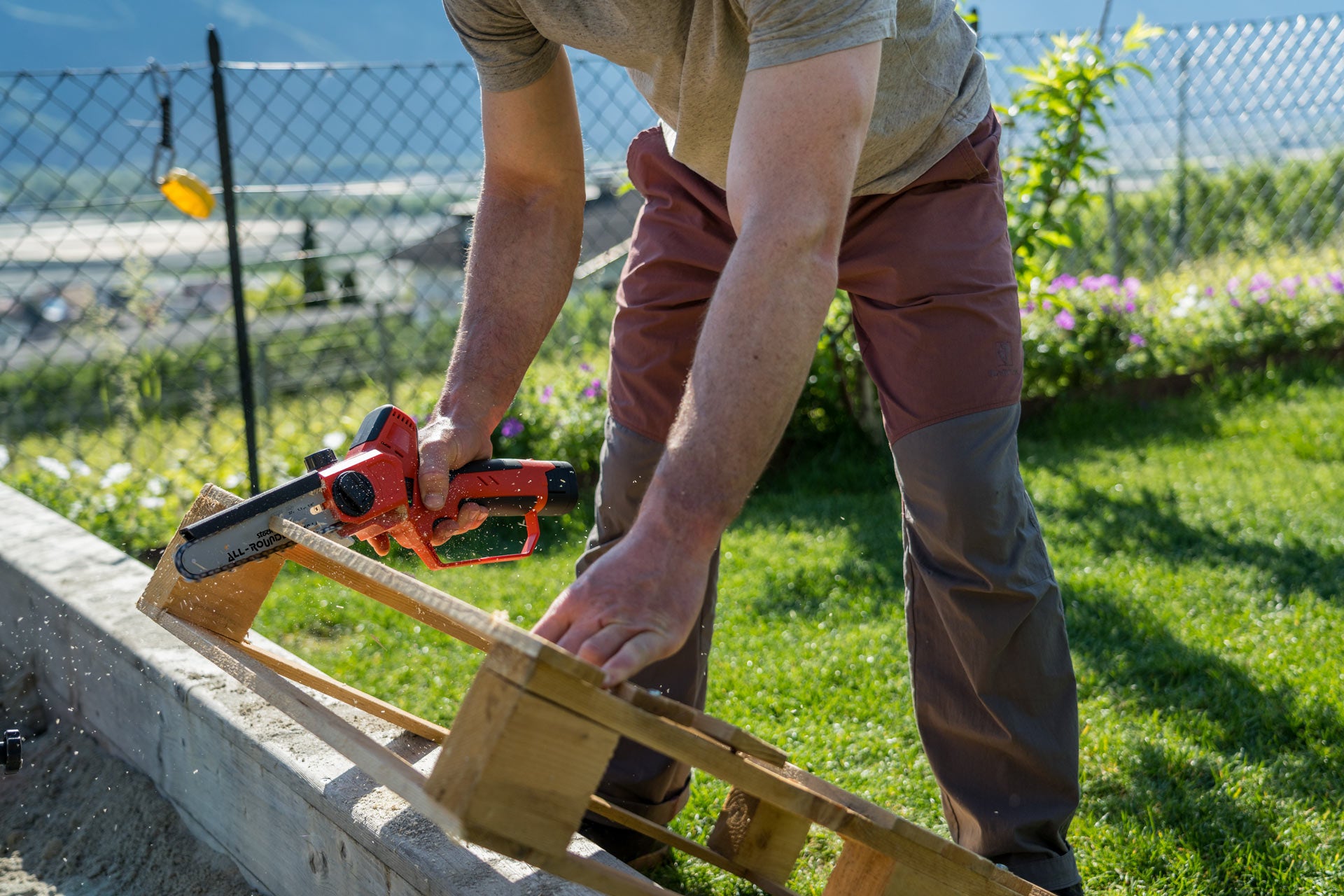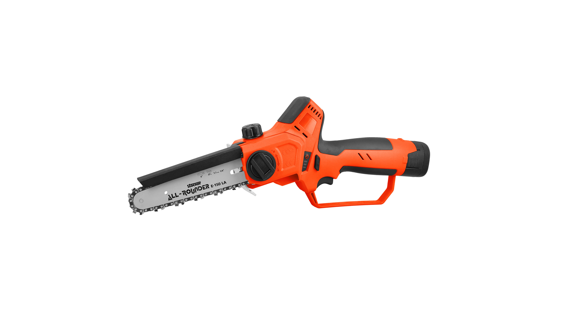 La motosega ALL-ROUNDER E-150 LA è uno strumento versatile e ottimo per potare rami di media dimensione e in tutte le situazioni DIY. Un peso di 1.135 gr compresa la batteria, e una lunghezza di 43 cm, gli permettono di essere comoda e dinamica per tutte le situazioni. La motosega ALL-ROUNDER E-150 LA raggiunge una velocità di taglio di 12 m/s garantendo un taglio preciso e netto, ed è efficace fino a diametri che raggiungono i 120 mm.