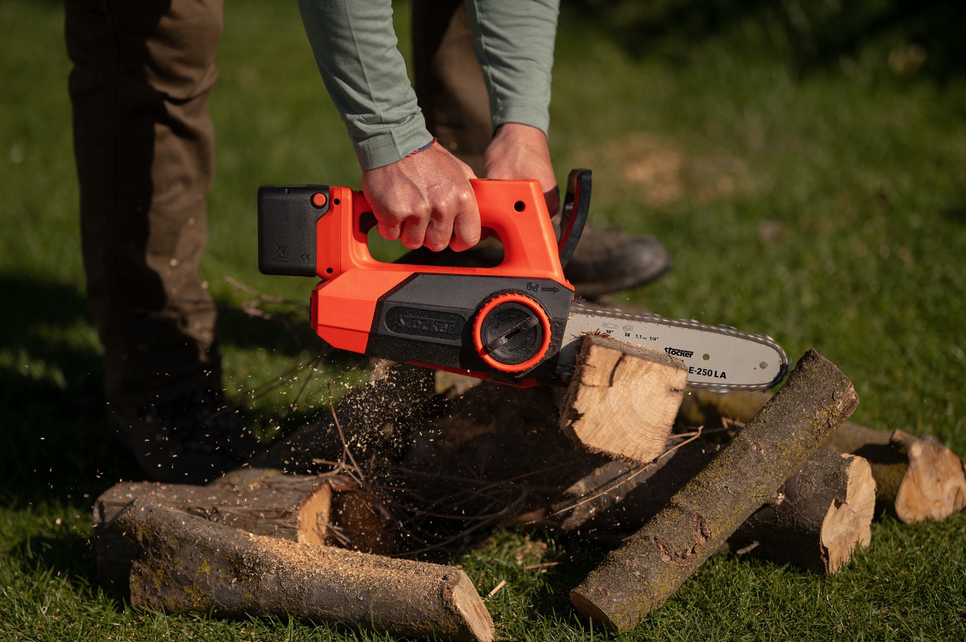 La motosega Magma E-250 LA 21 V è una pratica e funzionale motosega a batteria con un'impugnatura a due mani per un controllo maggiore. A lubrificazione automatica, con un serbatoio per l'olio di 150 ml. L’arpione guida il taglio rendendolo più preciso. Il motore brushless da 650 W garantisce durata e affidabilità anche durante un uso prolungato, per una velocità massima della catena pari a 13 m/s.