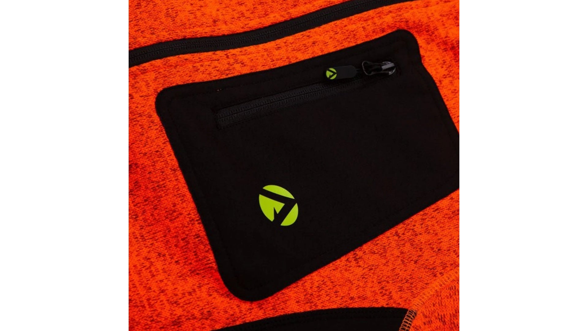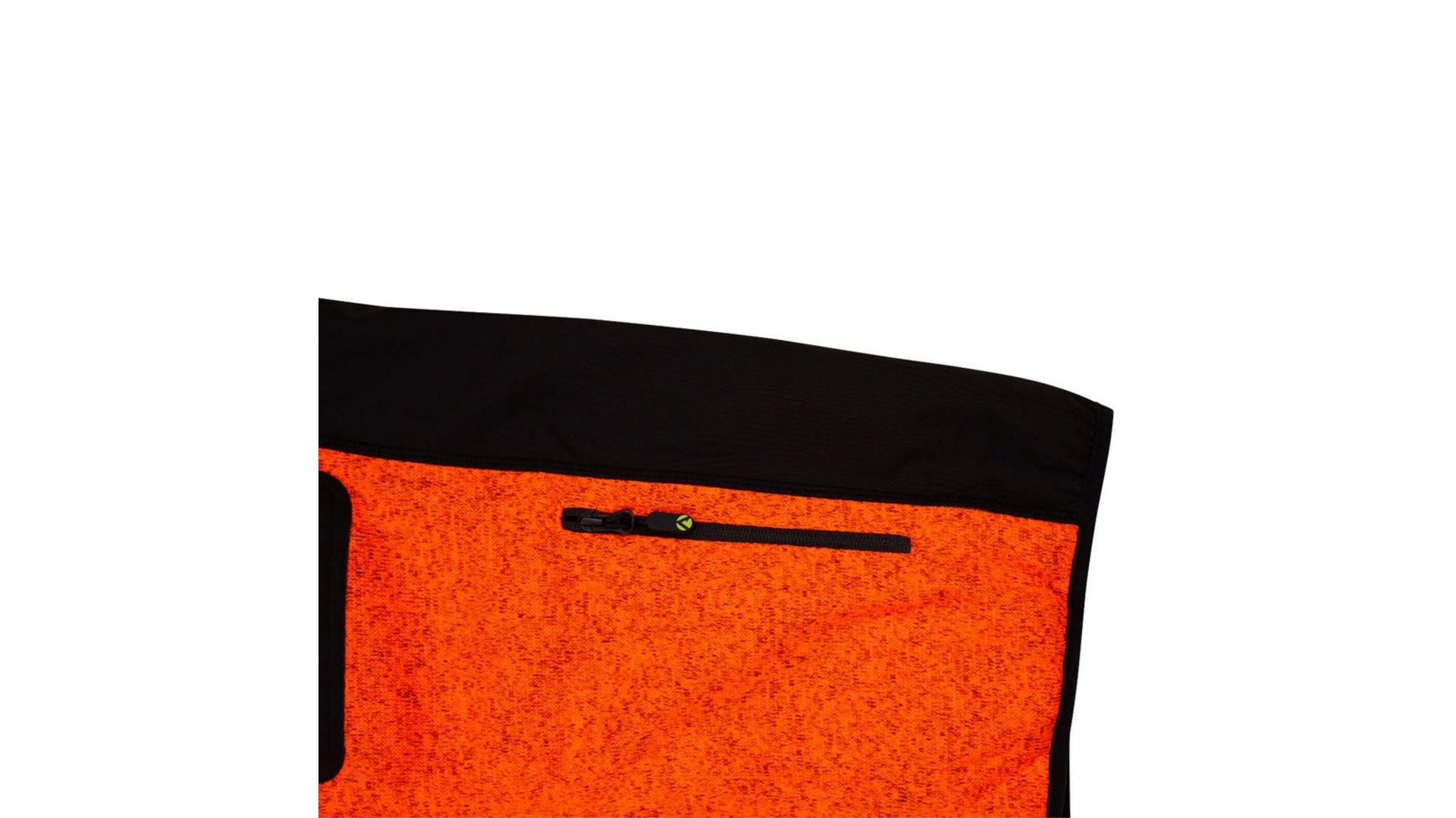 L'ampia tasca sul petto può contenere facilmente uno smartphone ed è dotata di un punto di accesso interno per le cuffie.