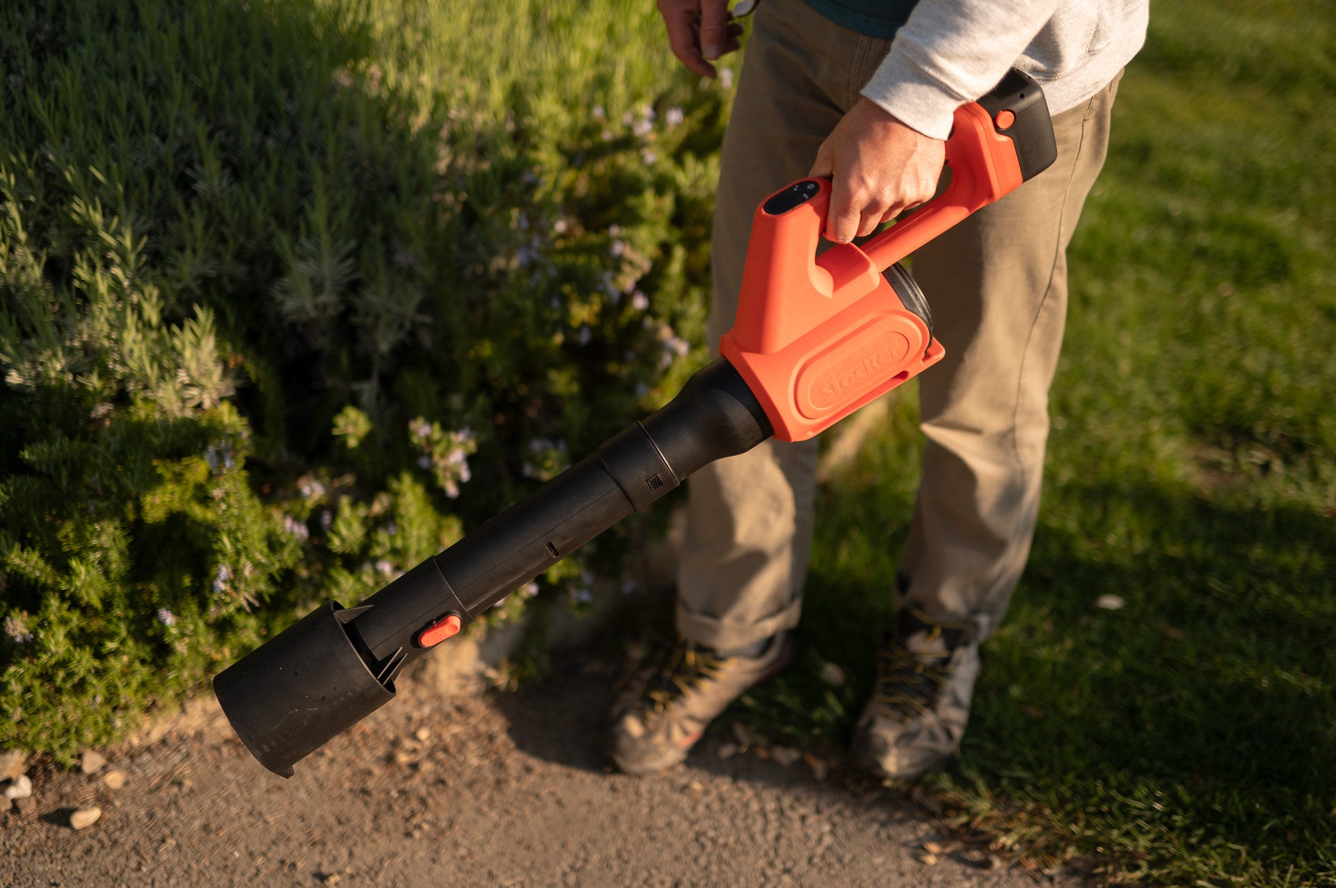 Soffiatore a batteria 21 V pensato per operazioni di pulizia in ambito domestico e hobbistico.