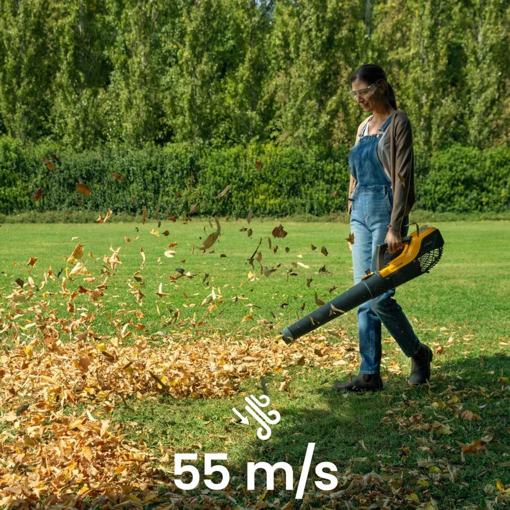 STIGA BL 500e è un soffiatore a batteria per foglie a batteria progettato per rendere le operazioni di pulizia all'aperto molto più veloci e facili. Il motore alimentato a batteria garantisce emissioni zero con meno vibrazioni e una notevole riduzione del rumore rispetto ai tradizionali soffiatori a scoppio. L’impugnatura ergonomica assicura il comfort d’uso, mentre i supporti in gomma proteggono la parte inferiore e il tubo di aspirazione del soffiatore. La posizione del motore e della ventola sul soffiatore BL 500e concentrano il flusso d'aria in una direzione unica per una velocità massima di 55 m/s: ciò significa che sarai in grado di pulire qualsiasi superficie esterna in modo rapido e semplice. Il tastierino intuitivo sull’impugnatura permette di scegliere con facilità tra tre diverse impostazioni di velocità dell’aria: bassa velocità per la rimozione di materiali leggeri da prati e ghiaia; velocità media per erba tagliata e foglie su asfalto e altre superfici solide; o la velocità massima per affrontare la neve fresca, le foglie bagnate e altri detriti più impegnativi.
