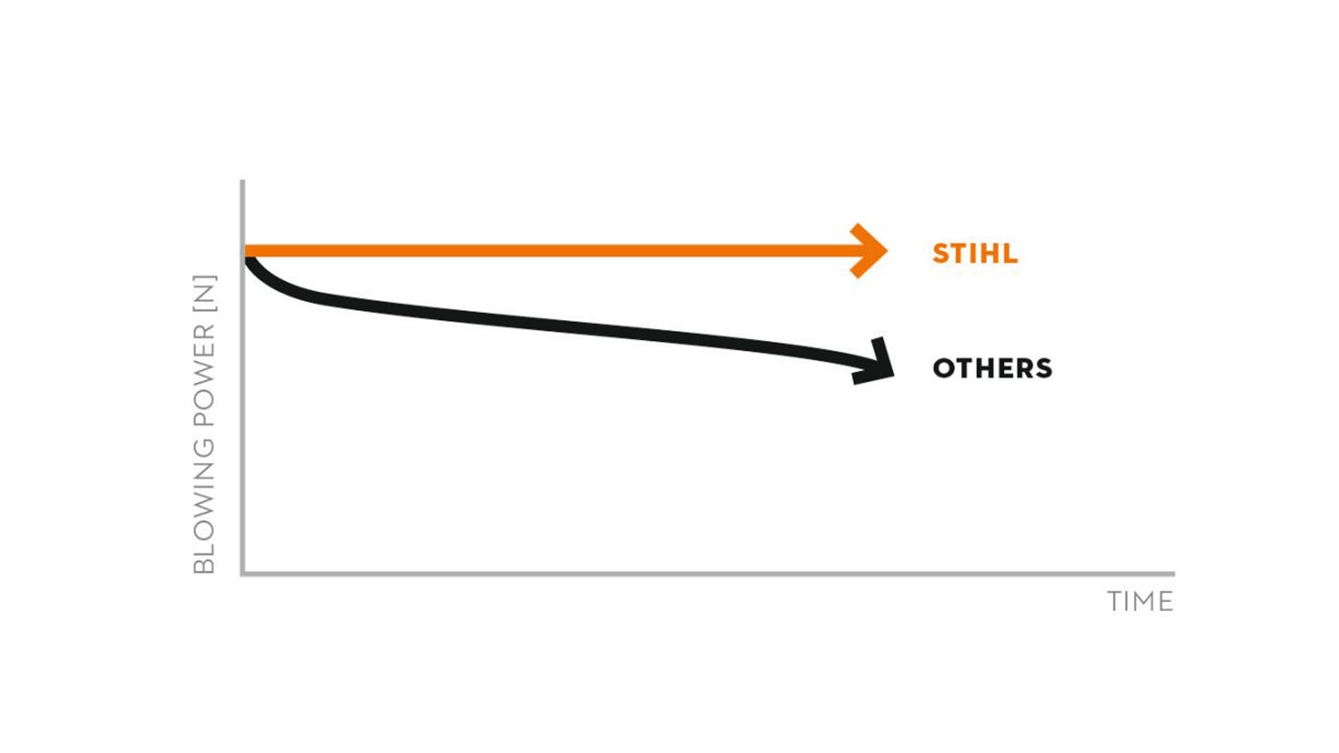 STIHL Sound Engineering fa sì che i rumori dello STIHL BGA 250 nell'ambiente circostante vengano percepiti meno fastidiosi. Le frequenze sgradevoli sono state notevolmente ridotte.