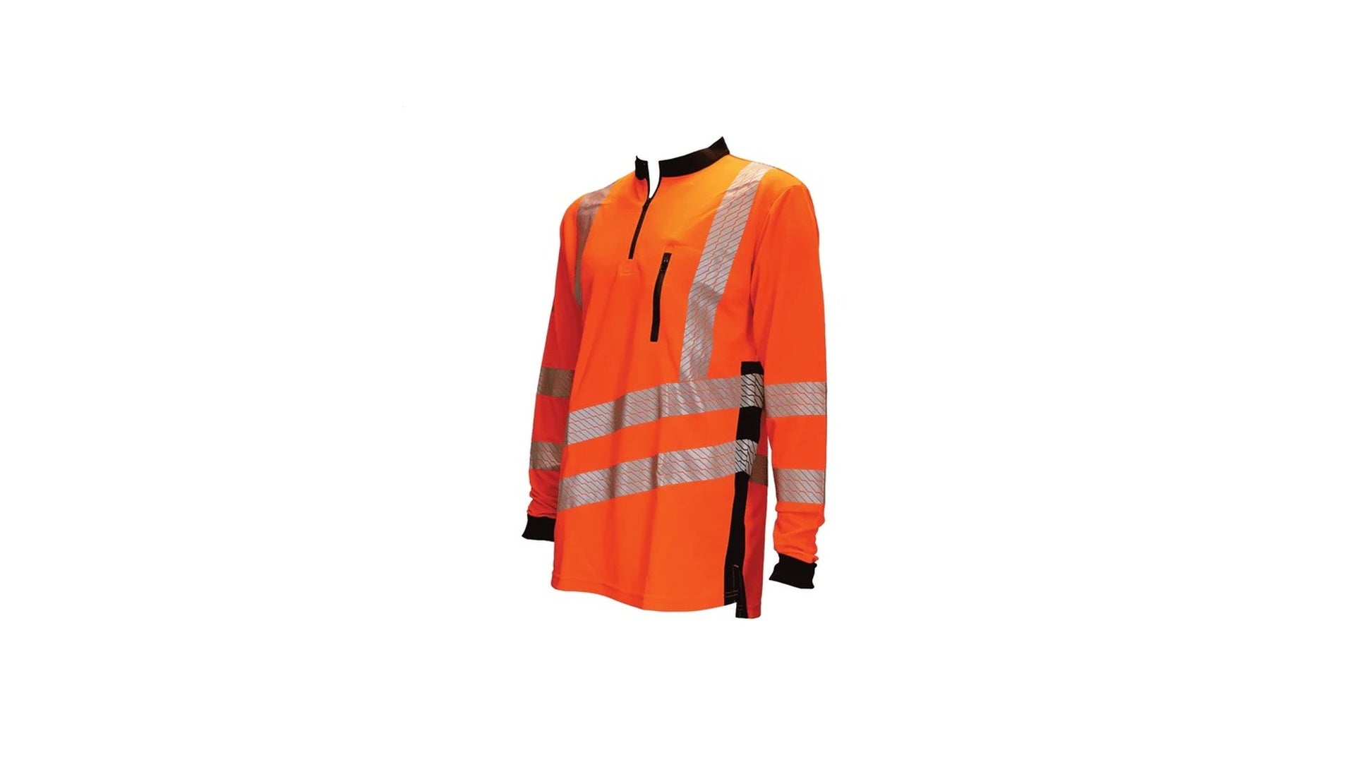 Maglietta ad alta visibilità realizzata in tessuto funzionale avanzato e traspirante, con strisce riflettenti stretch-flex applicate termicamente, dotata di zip e tasca sul petto.